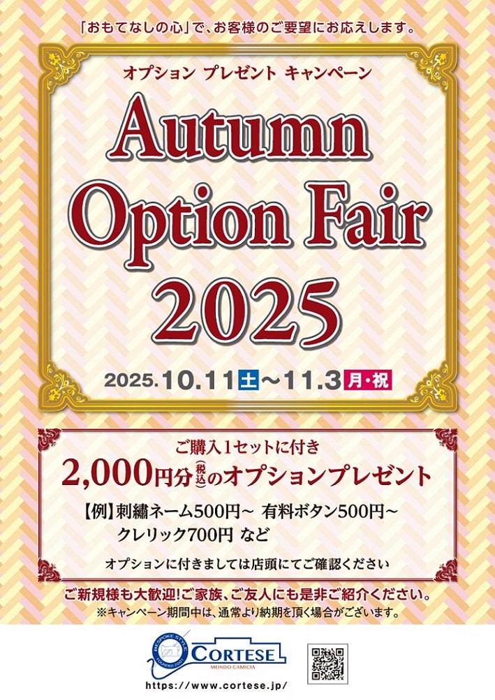 コルテーゼは日本製オーダーシャツ専門メーカー小売りです。自社工場直営だからこそこの価格を実現させたました。