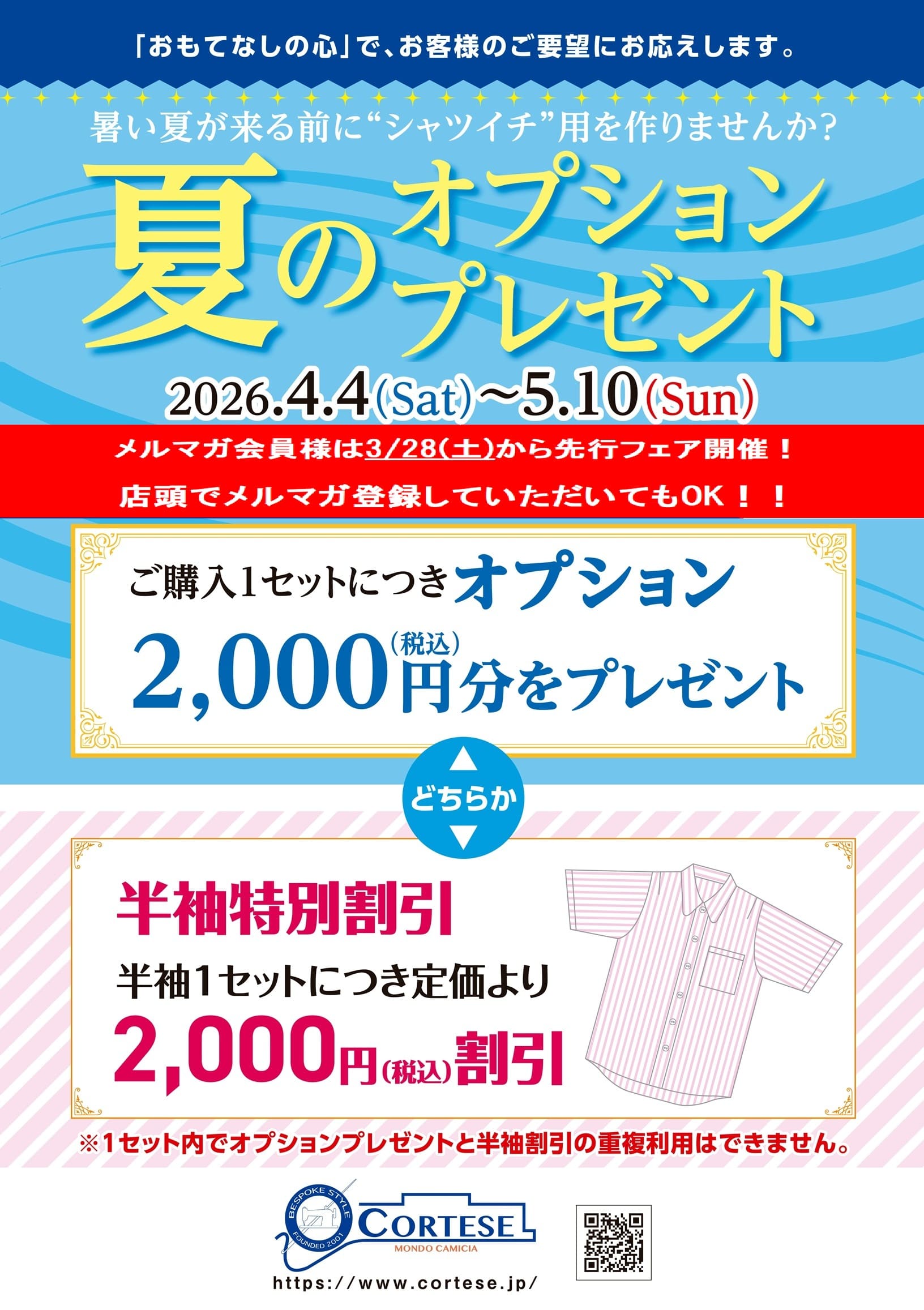 東京のオーダーシャツ専門店。都内4店舗、自社工場の高品質オーダーシャツを2着税込15290円から、オンラインサイトでは2着税込12870円から。店舗では熟練の店長がシャツ作りをお手伝い致します。レディースも対応しております。